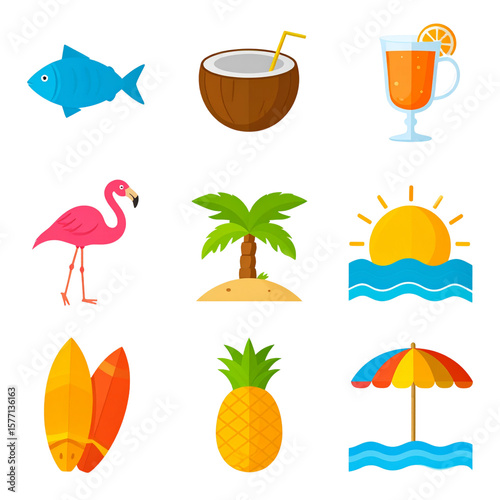 Naklejka premium This colorful vector icon set beautifully illustrates beach and summer...