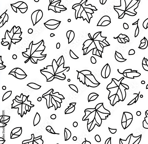 © typepng, Fototapeta premium This coloring book for kids features simple leaves drifting down