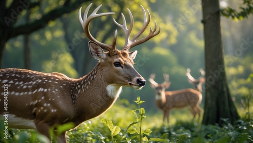 © AkuAku, Naklejka premium This deer develops during mating season, resides in groups, and prefers plant-based food.