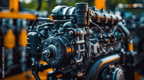 Fototapeta premium This detailed diesel engine highlights components and craftsmanship,...