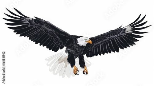 Naklejka premium This detailed illustration showcases a bald eagle soaring with its wings...