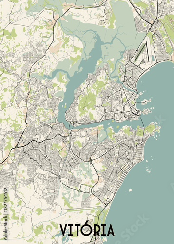 Fototapeta premium This detailed map showcases the city of Vitoria, Brazil. The map features a...
