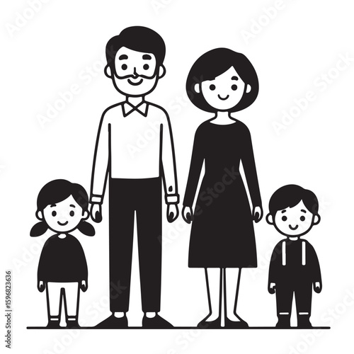 © Chinu Akter, Fototapeta premium This graphic depicts a family of four—father, mother, and two children—in a simple, stylized icon format.