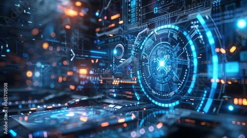 © Elshad Karimov, Obraz premium This image displays a backdrop with a technological theme.
