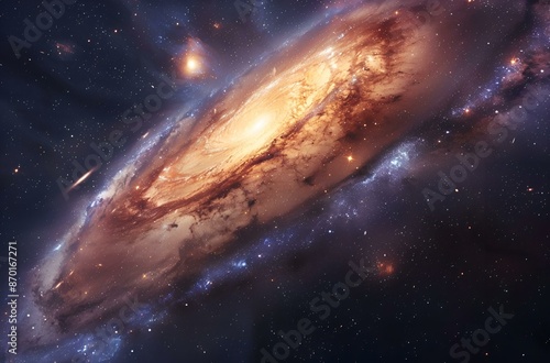 Fototapeta premium This image displays the Andromeda Galaxy, a spiral galaxy, in the night sky.