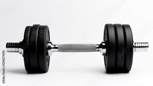 Fototapeta premium This image features a black rubber dumbbell with a textured chrome handle, ideal for fitness and weightlifting themes, It can be used in health blogs, gym advertising, or workout tutorials,