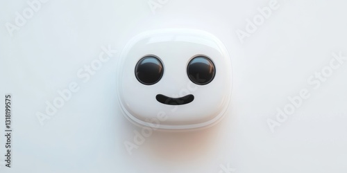 Fototapeta premium This image features a pair of cute wireless earbuds with a smiling face on a soft white background, perfect for promoting technology and entertainment.