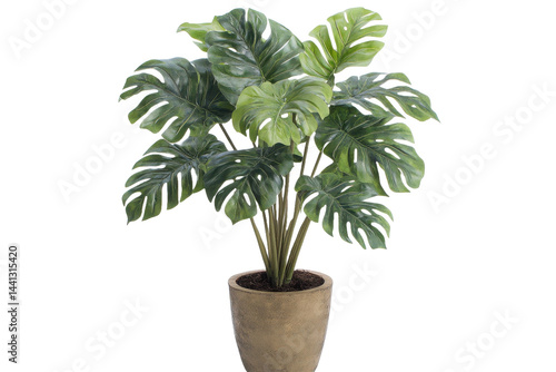 Obraz premium This image features a potted tropical plant with large green leaves, a clean...
