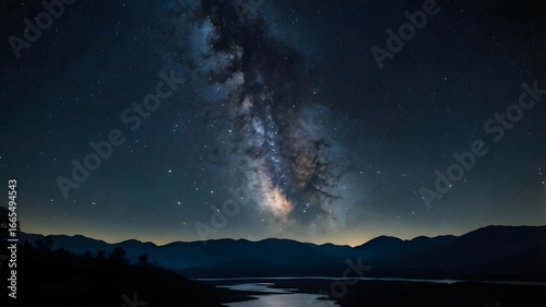 Fototapeta premium This image is a dramatic artistic rendering of a star-filled night sky over a...
