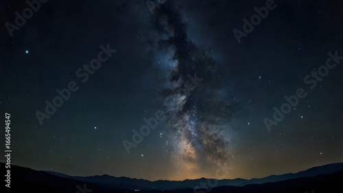 Fototapeta premium This image is a dramatic artistic rendering of a star-filled night sky over a...