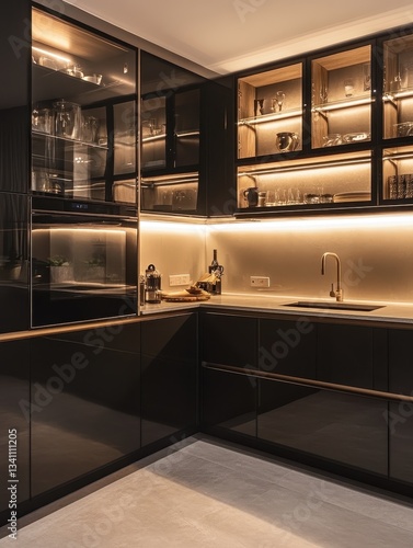 Fototapeta premium This image showcases a modern kitchen corner with cabinets