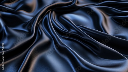 Fototapeta premium This image showcases an elegant black satin fabric with luxurious waves creating a smooth texture perfect for background use