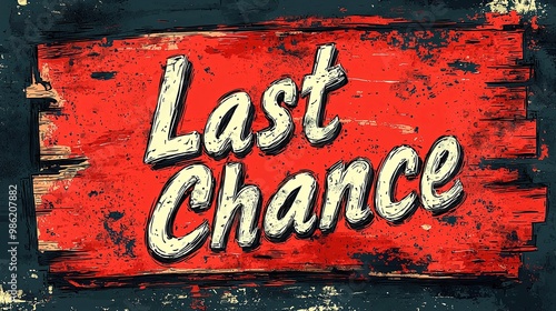Fototapeta premium This image shows a rustic red sign with 'Last Chance' written in vintage-style white letters, conveying a sense of urgency and nostalgic charm, encouraging immediate action.
