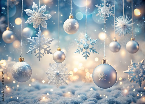 Fototapeta premium This is a beautiful winter scene with hanging snowflakes and ornaments. the perfect backdrop for your holiday photos.