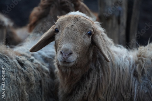 © Serhii, Obraz premium This is a closeup image of a sheep that is gazing at the camera
