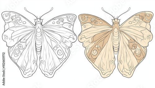© typepng, Fototapeta premium This is a coloring book page for preschool children featuring colorful butterflies