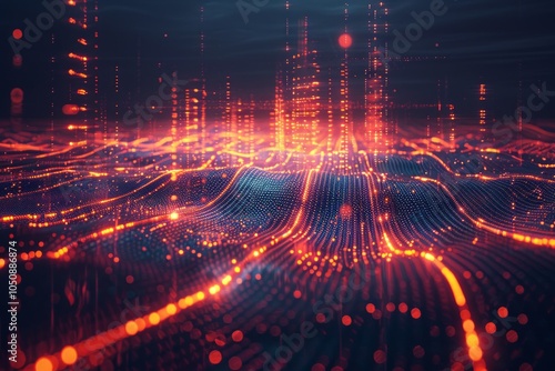 © neirfy, Obraz premium This is a digital background with waveforms and glowing particles, perfect for hightech and futuristic designs