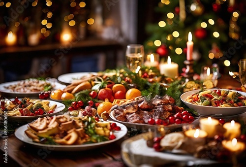 © Luis Eduardo, Fototapeta premium This is a festive scene set on a table covered with a white tablecloth