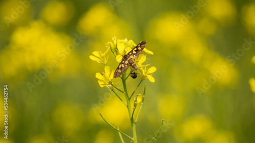 © Monochobe, Naklejka premium This is a high-resolution natural photo. Bees are collecting honey from mustard flowers. Yellow mustard field.