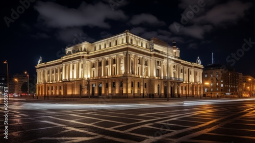 Fototapeta premium This is a nighttime shot of the Warsaw Grand Theatre, also known as Teatr Narodowy