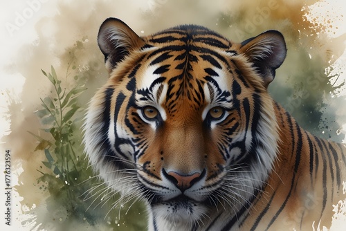 Fototapeta premium This is a serene portrait of a tiger. The tiger appears calm and relaxed. It...