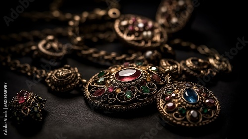Obraz premium This is a set of women's jewelry that includes a necklace, earrings, and bracelet, designed to enhance both beauty and accessorizing. Generative AI