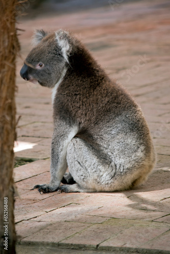 © susan flashman, Fototapeta premium this is a side view of a koala sitting on bricks