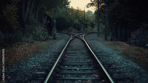 © Rabil, Naklejka premium This is a train track where two lines meet.