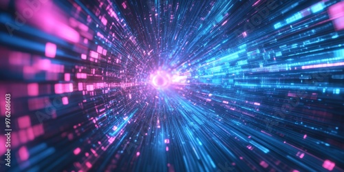 Fototapeta premium This is a vibrant and detailed abstract representation showcasing the flow of digital data, emphasizing the capabilities of networks and the complex processes involved in modern technology
