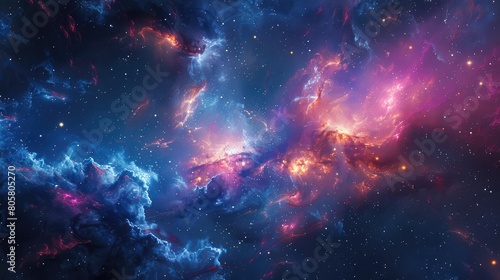 Fototapeta premium This is an abstract painting of a nebula. The colors are vibrant and the shapes are fluid. The painting has a sense of mystery and wonder.