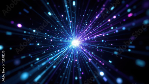 Naklejka premium This is an artistic representation of data visualization with a space-themed background and a central glowing point, reminiscent of RAG (Retrieval Augmented Generation) technology.