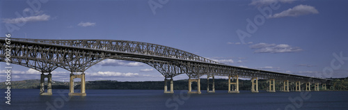 © spiritofamerica, Naklejka premium This is the Beacon Bridge which is over the Hudson River. It is a large steel bridge. The water and sky are blue.