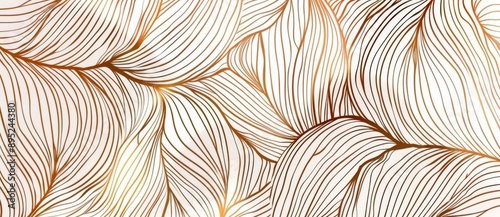 Fototapeta premium This luxury floral pattern with hand drawn leaves is set against a minimalistic linear background.