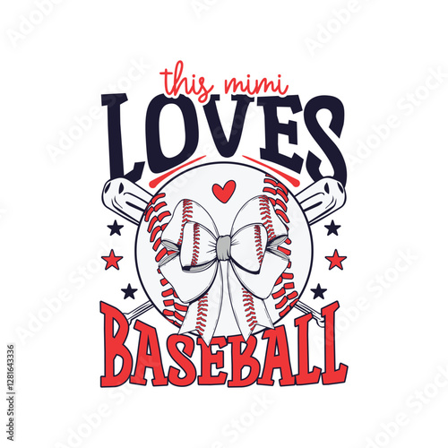 Naklejka premium This mimi loves baseball bow design, BAseball lover, baseball season bow design