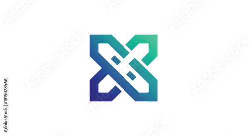 © Colorpulse, Fototapeta premium This modern abstract logo features a geometric, interlocking design with a professional green-to-purple gradient. The stylized "X" or "S" shape symbolizes connectivity, synergy, and technology.