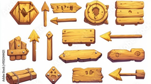 Naklejka premium This modern collection of wooden bamboo signboard frames, featuring rope on...