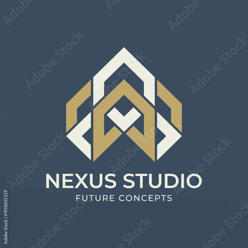 Fototapeta premium This modern logo features geometric shapes that combine to form a futuristic studio emblem, representing innovation, creativity, and forward-thinking in conceptual design.