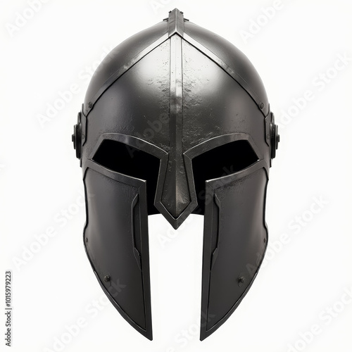 Naklejka premium This striking gladiator helmet features bold, angular lines and a polished surface that captures the essence of ancient warriors, symbolizing strength and bravery