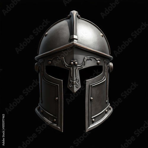 Obraz premium This striking metal helmet, adorned with ornate details, represents the...