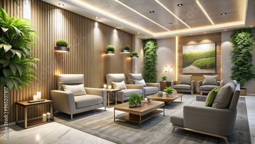 © DigitalArt Max, Fototapeta premium This stylish sanctuary combines lush textures, muted hues, and warm illumination to create a tranquil retreat for