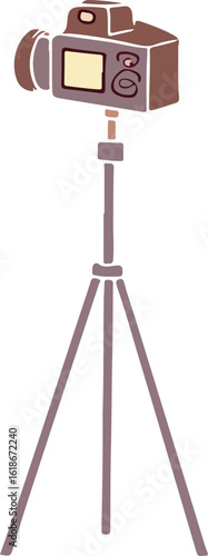 Obraz premium This vibrant illustration shows a young black child using a video camera on a tripod, ideal for content about kid’s hobbies, digital learning, and career inspiration