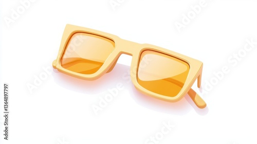 © PixPro Studios, Fototapeta premium This vibrant pair of yellow sunglasses features a bold design and tinted lenses. The sleek frame is highlighted against a clean white background, emphasizing their trendy appeal