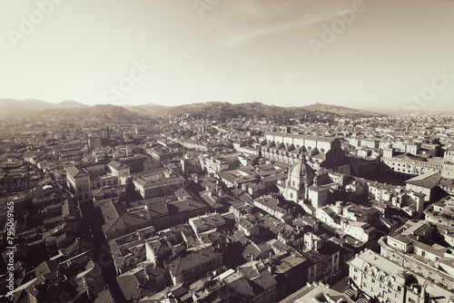 © Artem, Fototapeta premium This vintage aerial photograph captures Bologna historic center. The monochrome tone enhances the medieval architecture and the city dense, traditional layout