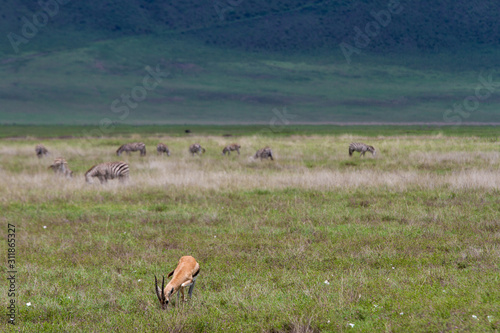 Naklejka premium Thomson-Gazelle und Zebras im Ngorongoro-Krater, Tansania