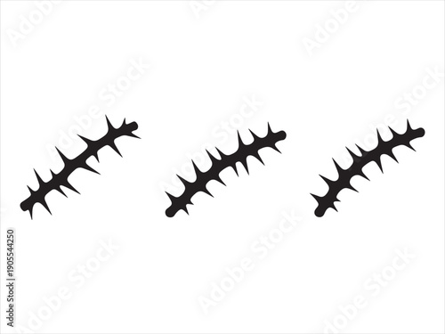 © Jabed, Obraz premium Thorn Branch Silhouette Set, Thorn branch silhouettes, circular thorn rings, black vector thorns, sharp botanical elements, tattoo vector design
