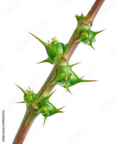 © Vlad, Obraz premium Thorn Vine. Close-up Isolated Thorny Smilax Vine on White Background