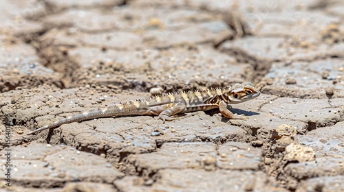 Fototapeta premium Thorny devil lizard crawling across cracked earth, intense texture detail,...
