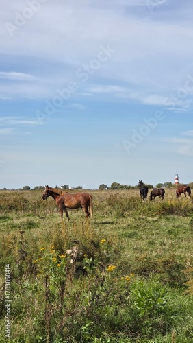 © Air_Lady, Naklejka premium Thoroughbred horse mare on pasture. Farm animal.