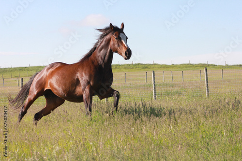 © Lesley, Fototapeta premium Thoroughbred Horses Running In Grassy Field