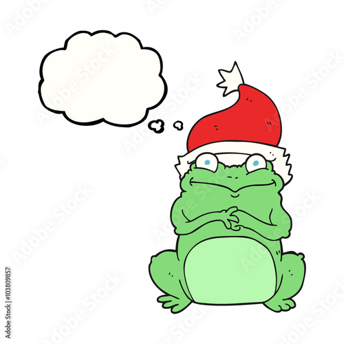 Fototapeta premium thought bubble cartoon frog wearing christmas hat
